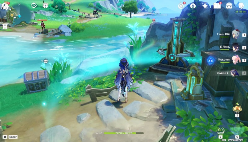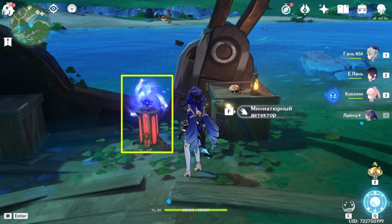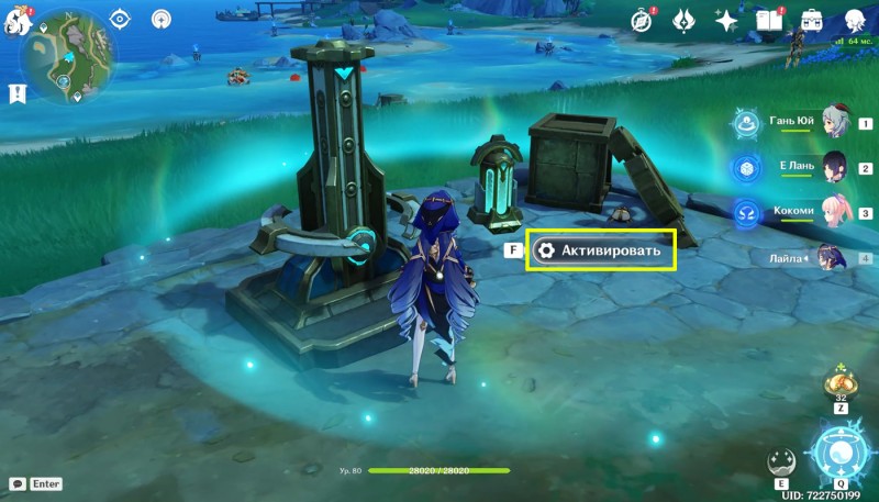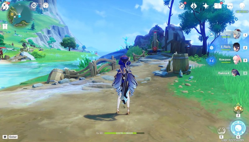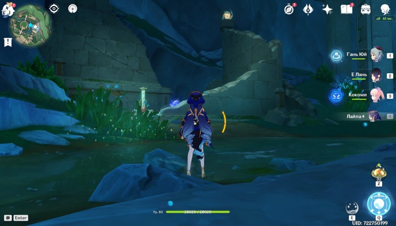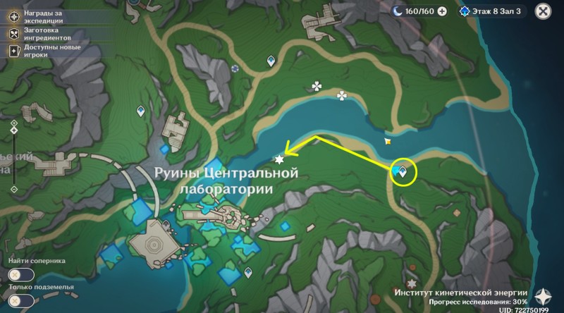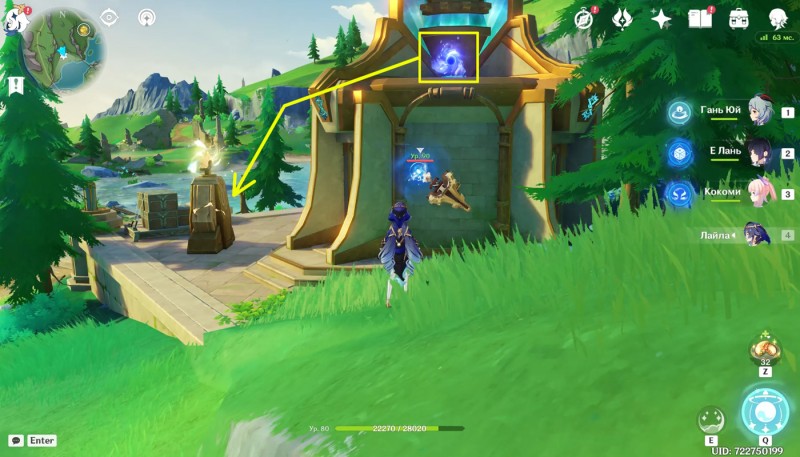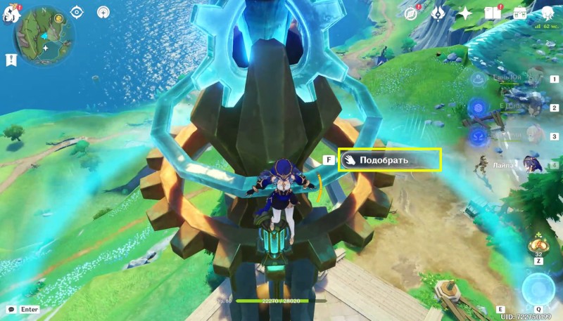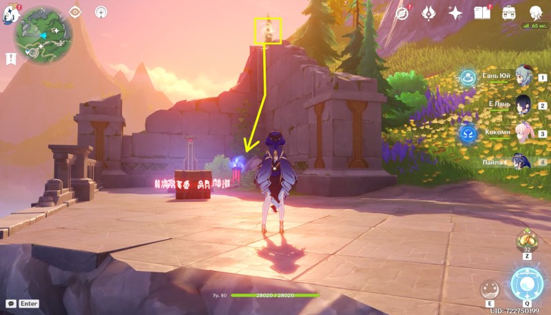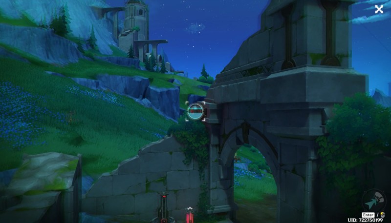 Первый на нашем маршруте стабилизатор находится к юго-востоку от статуи Гидро Архонта на разрушенном мосту, но удобнее будет добираться от телепорта с вершины ближайшей горы, просто пролетев вниз до места с головоломкой.