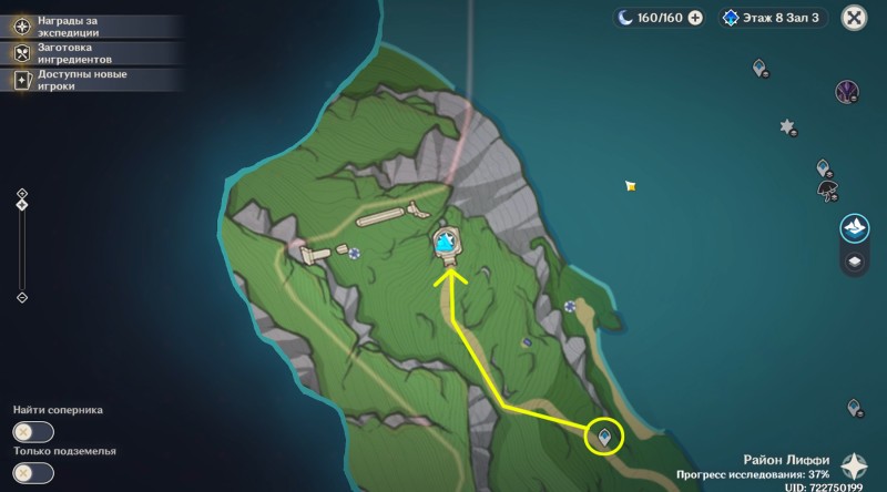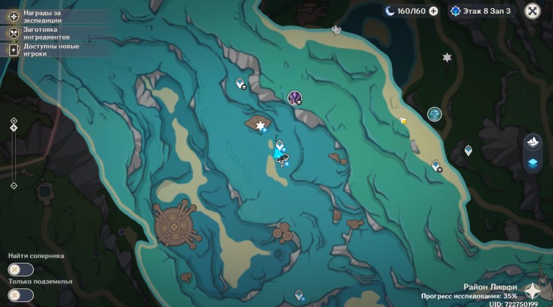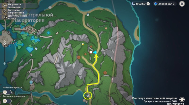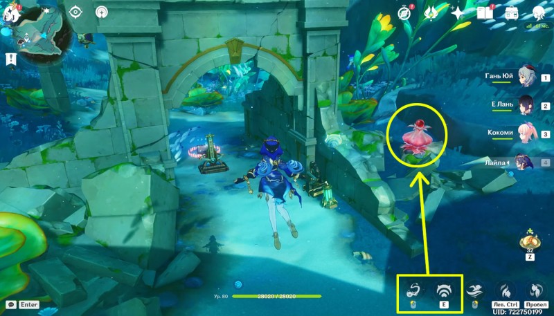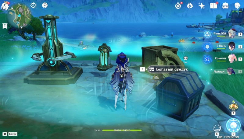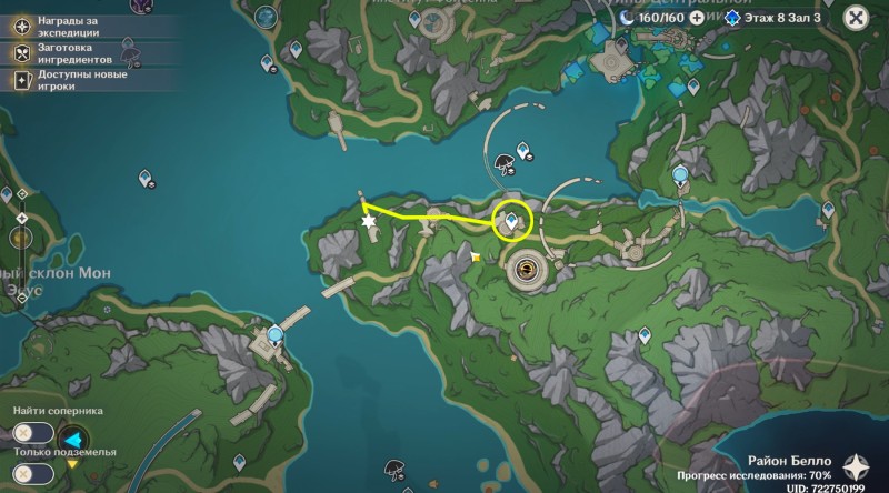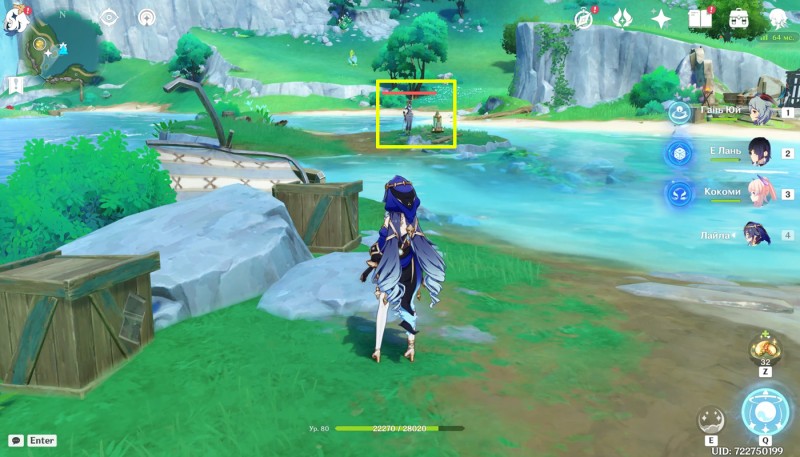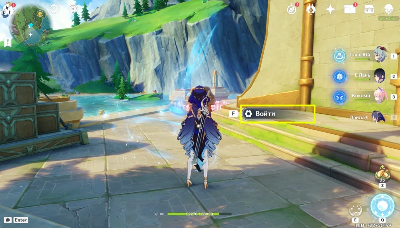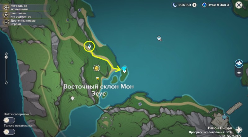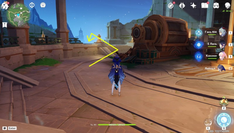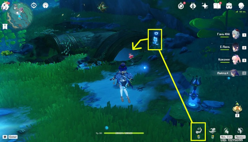 Первый на нашем маршруте стабилизатор находится к юго-востоку от статуи Гидро Архонта на разрушенном мосту, но удобнее будет добираться от телепорта с вершины ближайшей горы, просто пролетев вниз до места с головоломкой.