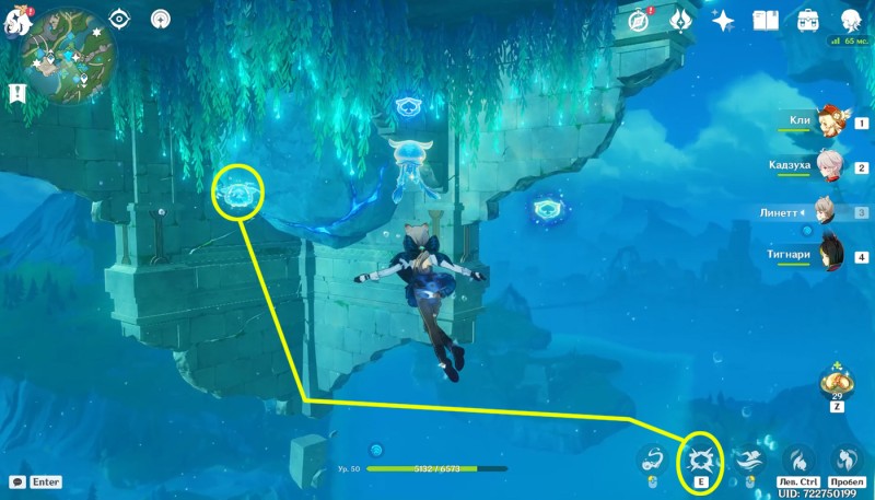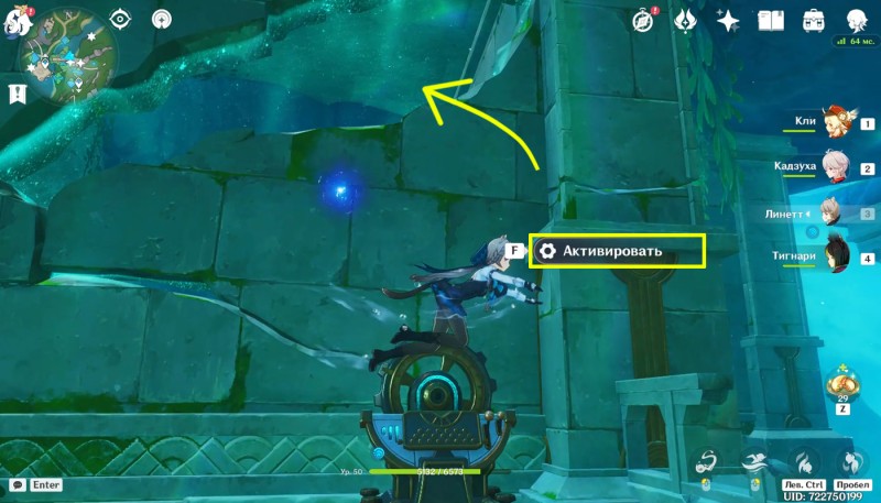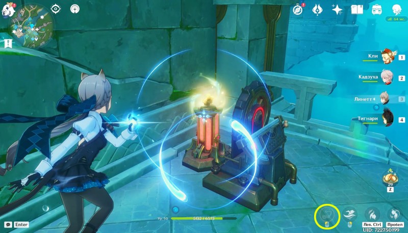 Советуем взять в отряд персонажей из Фонтейна, обладающих силой усии (например, бесплатную Линетт)– герои помогут быстрее перемещаться между водой и сушей, а также решать головоломки с устройствами пневмусии.