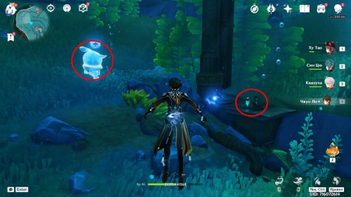 Переместитесь к телепорту на севере указанной локации, а затем бегите на юго-восток и заберитесь на скалу. На ее вершине вы обнаружите нужное вам сокровище и гидрокул.