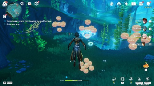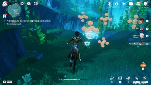 Начните с тренировки привыкания, в рамках которой вам нужно уничтожить все пухлефрукты за 2 атаки. Зажмите клавишу «Е», чтобы перейти в режим прицеливания, и выпустите бомбу в переднюю группу мишеней, как показано на картинке ниже. Взорвите ее, повторно нажав на кнопку навыка.