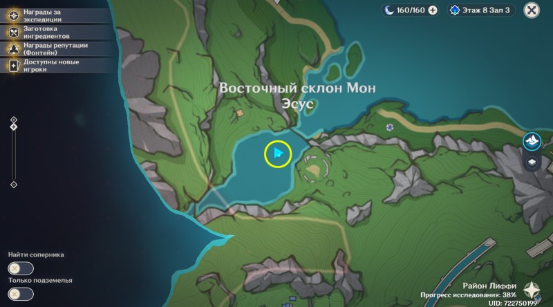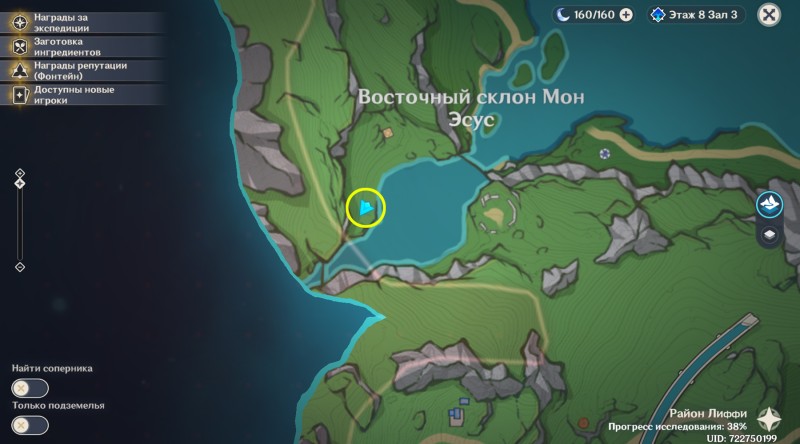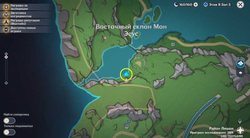 Отправляйтесь к водоему на верхнем ярусе водопада, расположенному к юго-западу от телепорта на Восточном склоне Мон Эсус: сундук стоит на участке земле посреди воды.