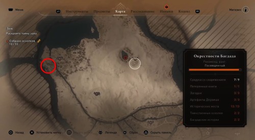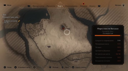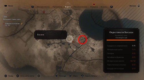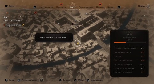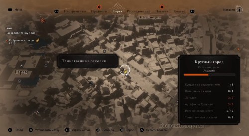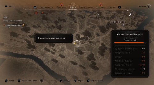 Всего можно отыскать 10 таинственных осколков. Большинство из них вы сможете добыть на улицах Багдада. На карте ниже показано их примерное расположение. Далее мы более подробно расскажем, как их получить.
