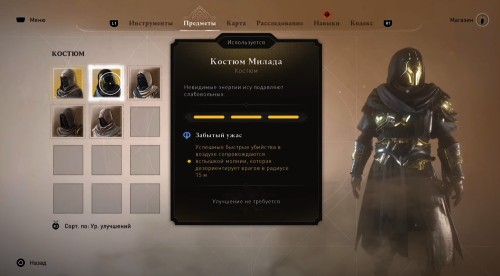 В последний постамент нужно установить 5 осколков для получения легендарного костюма Милада, наделяющего перком «Забытый ужас». С ним вы сможете вызывать вспышки молнии при быстрых убийствах врагов в воздухе.