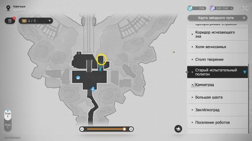 Небольшая территория старого испытательного полигона располагает 5-ю обыкновенными сундучками, в каждом из которых хранится 5 звездного нефрита, а также другие полезные награды. Рассмотрим доступную зону около терминала «Эфирных войн».