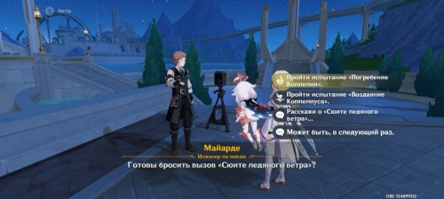 Начните сражение и опустите уровень ХП автоматона до 50% и ниже. Когда на сцене появятся Анемо вихри, последовательно подбегите к каждому из них и стойте, пока Коппелиус не наложит на них Крио эффект. Завершать бой после этого необязательно.
