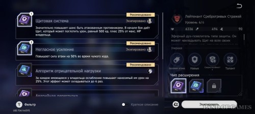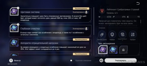 - Лейтенант (щит и поддержка, чипы по типу «Глубокой очистки»)