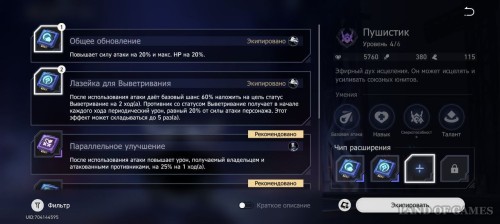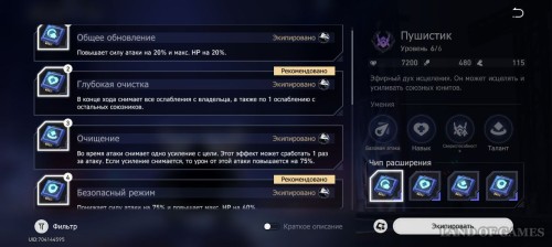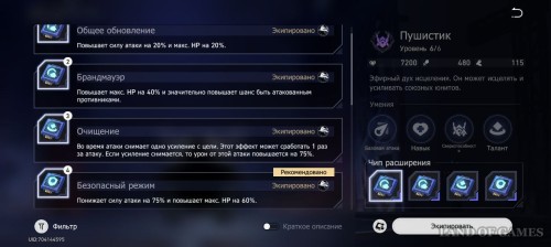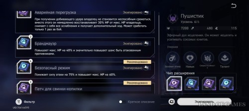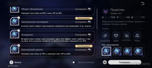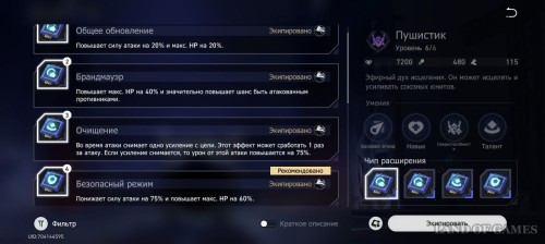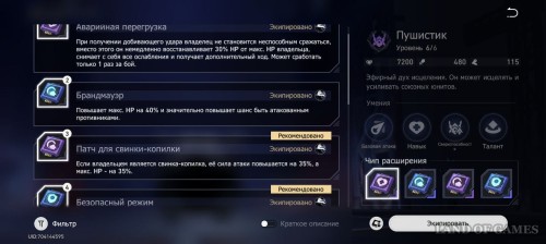 Отметим, что приведенные на скринах выше чипы – лишь вариант сборки, успешно нами опробованный. Вы можете брать любые другие с похожими характеристиками – приоритетные параметры для каждого юнита мы здесь и далее отметили в скобках. То же относится и к бойцам: мы подбираем их в основном по типам, то есть так, чтобы они наносили повышенный урон врагам. Если в вашей коллекции вдруг нет кого-то из этих духов, вы можете обратиться к нашему гайду и узнать, где именно их взять. Наконец, большинство из них заменяемы: например, лев-дракон легко заменяется свинкой-копилкой; это стартовый юнит с мощным лечением, а огромного урона они оба не наносят, поэтому их типы большой роли не играют.