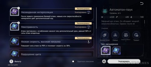 В бою сосредоточьтесь сперва на пауках (особенно на тех, на ком висит статус «Таймер»), затем добивайте Подавителя. Когда у пауков останется мало ХП, атакуйте их ультой Морозного странника – благодаря эффекту чипа такая победа над противниками будет постоянно восстанавливать вам энергию, которую уже потом можно направить на Подавителя.