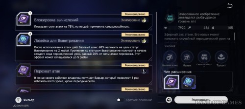 Награда – 90 очков опыта эфирного духа и чип «Блокировка вычислений», повышающий СА и блокирующий сверхспособность. В дальнейших боях мы всегда будем давать этот чип рыбе-дракону – ульта у нее бесполезная, а сила атаки будет как нельзя кстати.