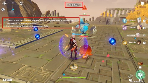 Если учесть аномалию артерий земли, то вам обязательно нужно взять в свой отряд Анемо персонажа, чтобы создавать Рассеивание и тем самым вызывать ударные волны. При этом драться придется в основном с Крио и Пиро слаймами, имеющими иммунитет к соответствующим стихиям. По этой причине мы не советуем брать в команду персонажей указанных элементов.
