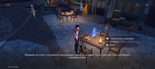 После этого направляйтесь в восточную часть Переулка ауруматонов и поднимитесь к ремесленной мастерской Сяо. Маленькая голограмма стоит на одном из столиков. Взаимодействуйте с ней и просмотрите сценарий, состоящий из пяти историй о героических сражениях.