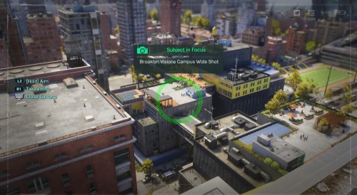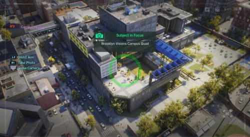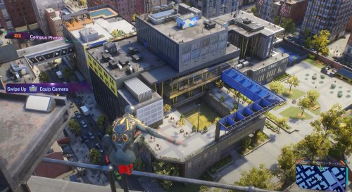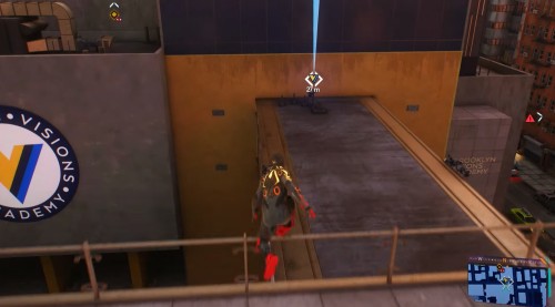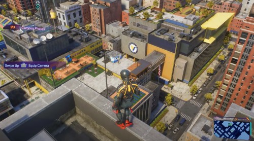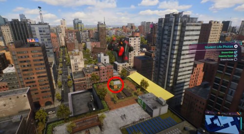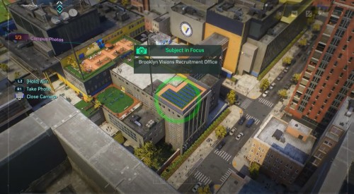 Далее поднимитесь на небоскреб, расположенный на юге, и сфотографируйте академию с другого ракурса. Летите к третьему зданию на западе с рекламным щитом. Сядьте на ограждение, возьмите фотоаппарат и сделайте третий снимок.