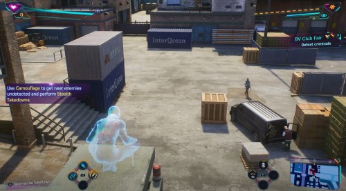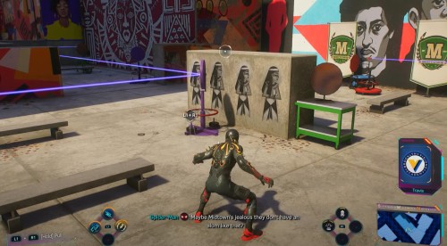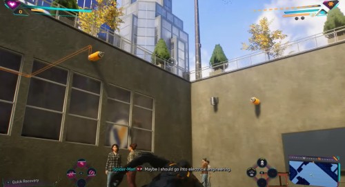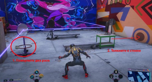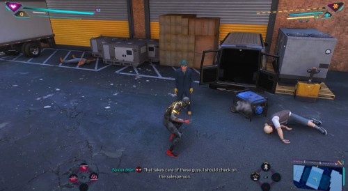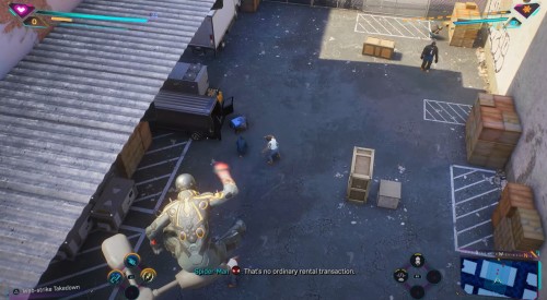 Гляньте небольшой ролик, в котором Майлз снова переоденется в костюм паука, а затем летите к возникшему указателю. Подлетев к нужному зданию, вы обнаружите группу бандитов. Можете расправиться с ними по-тихому или вступить в прямую конфронтацию.