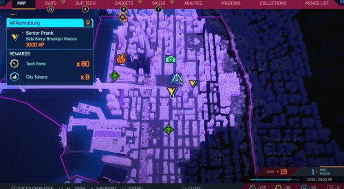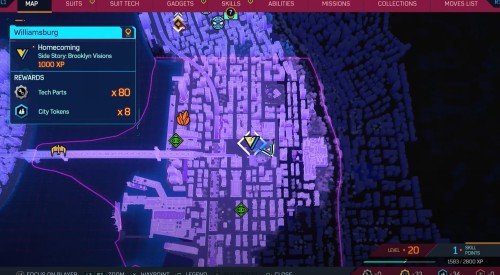 Отметим, что все Бруклин Вижнс расположены в одной локации – Уильямсбурге, поэтому искать их долго не придется. На карте выше показано их примерное расположение. За выполнение этих миссий вы будете получать очки опыта, жетоны города и полезные материалы. Далее рассмотрим каждый квест по отдельности.