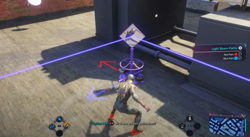 Поднимитесь наверх и воспользуйтесь паучьим чутьем, чтобы обнаружить генератор, однако он будет деактивирован. Подойдите к нему и примените шоковый удар (L1+квадрат) для его подзарядки.