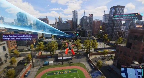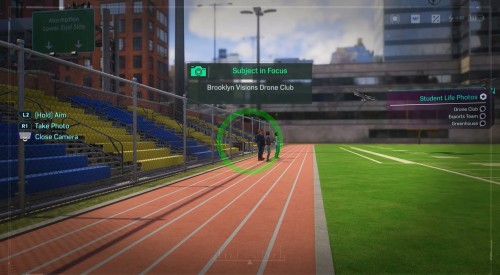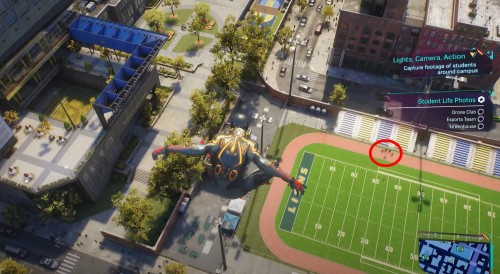 Теперь вам нужно будет сфотографировать моменты из обычной жизни студентов. Нужные места будут отмечены на карте. На стадионе, расположенном чуть южнее вашего текущего местоположения, вы обнаружите участников клуба любителей дронов, – сфотографируйте их.