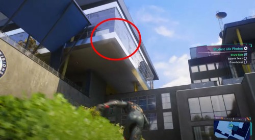 Пройдите на край здания, как показано на скриншотах ниже, а потом возьмите камеру и сфотографируйте кампус академии (нужный ракурс продемонстрирован на втором изображении; объектив должен загореться зеленым цветом).