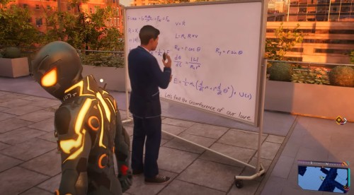 Вначале выполните «Ярмарку клуба БВ», а затем поднимитесь на крышу здания, отмеченного на карте, и подойдите к студенту, стоящему возле доски с уравнениями. Поболтайте с ним для старта миссии.