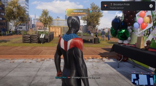 Подойдите к столику и загляните в пакет, чтобы получить новый костюм для Майлза Моралиса – Борикуа. Вы также разблокируете трофей «Гордость Бруклина». На этом цепочка квестов подойдет к концу.