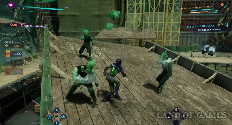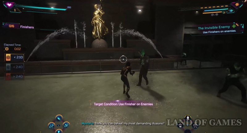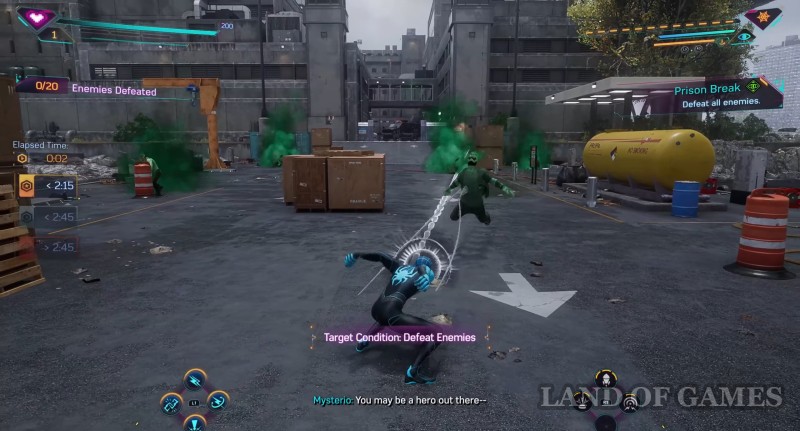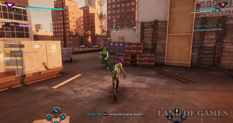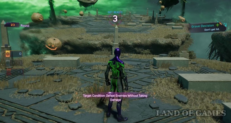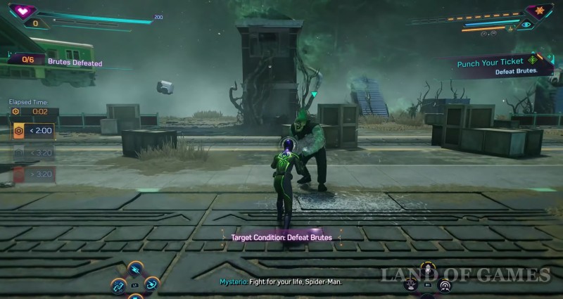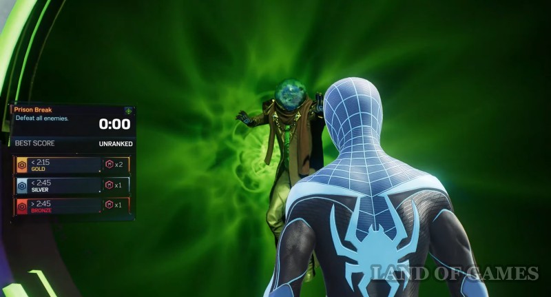 В этом испытании вам будет постоянно мешать Мистерио. Даже если вы убьете его, он будет возвращаться через какое-то время. Поэтому старайтесь как можно быстрее от него избавиться – для этого ждите, когда щиты вокруг него поднимаются и атакуйте паутиной. Не забудьте использовать добивания.