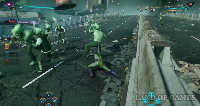 Старайтесь больше времени проводить над землей. Толкайте врагов под машины, об их приближении можно узнать по соответствующему звуку и зеленым стрелкам на асфальте. Также применяйте навыки, которые поражают сразу несколько целей.