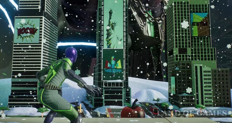 Зайдите внутрь аттракциона и пробегите по длинному коридору. Далее вы встретите Мистерио, который поместит вас в стеклянный шар со снегом.