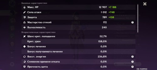 Узнать эти характеристики у вашего конкретного героя можно в меню персонажа, во вкладке «Подробнее». У большинства персонажей (не считая Кокоми) ШК и КУ на 1 уровне составляют 5% и 50% соответственно.
