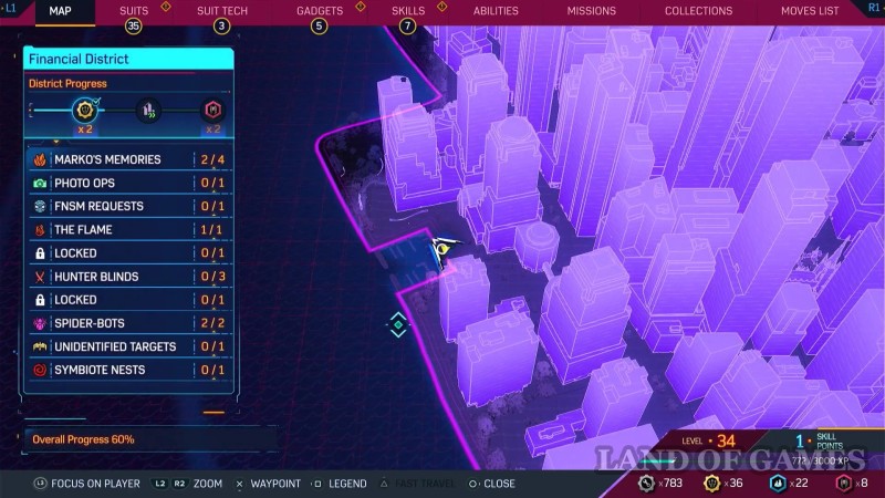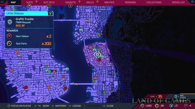 На карте данные квесты отмечены голубой меткой в виде головы человека-паука. К прохождению первого задания можно будет приступить после третьей основной миссии. Всего в Marvel’s Spider-Man 2 шесть таких квестов.