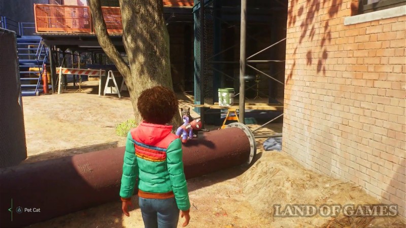 После этого бегите на крышу справа, а по дороге помогите кошке достать мягкую игрушку.