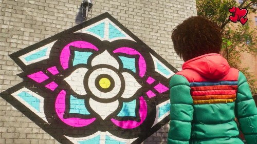 Рядом с лавкой обнаружите изображение на стене, которое кто-то испортил. Исправьте это недоразумение.