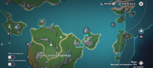 Телепортируйтесь к Статуе Архонтов на островке на северо-западе от руин форта Харибда. Спуститесь в воду и доплывите до указанного места. Здесь есть ракушка, однако напрямую попасть к ней не получится – переберитесь на другую сторону стены и проплывите через окно.