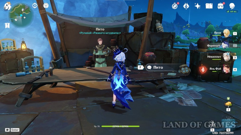 Огласив вопросы, блондинка даст вам время подумать, благодаря чему можно немного осмотреться: загляните к рулевому Пито, у которого продаются некоторые материалы для готовки.