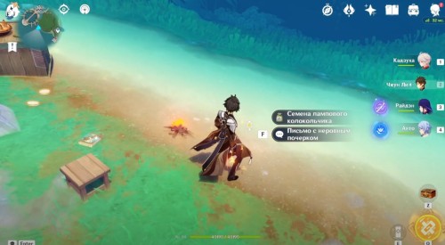 Вскоре вы должны будете отыскать чей-то лагерь с костром, табуреткой и ящиком. При этом возле воды можно обнаружить семена лампового колокольчика и письмо с неровным почерком. Как только вы поднимите семечки, у вас тут же откроется соответствующая ачивка, за которую дают 5 примогемов.