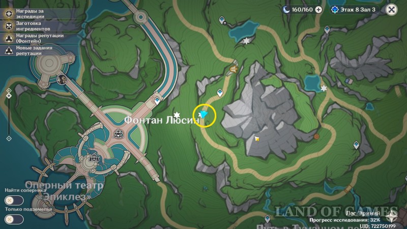 Первая на выбранном нами маршруте головоломка находится неподалеку от фонтана Люсин: выберите ближайшую точку быстрого перемещения и поднимитесь на восток до пригорка со сферой.