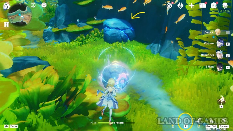 Обычно рядом со сферами всегда есть источник получения навыка осьминога (монумент с синим шариком на земле и ксенохромное существо под водой), а также золотистое поле, в радиусе которого можно применять Е-шку. Также вы можете контролировать направление и силу броска: для первого используйте движение камеры, а для второго следите за тем, как долго вы удерживаете элементальный навык.