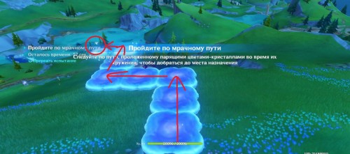 Для удобства выше мы привели скриншот с видимыми платформами, на который вы можете ориентироваться. Если сбиться с пути или не уложиться в отведенную минуту, испытание придется начинать заново. Награда за эту часть испытания – обычный сундук. Из него вылетит один из кристаллов и направится к ракушке.