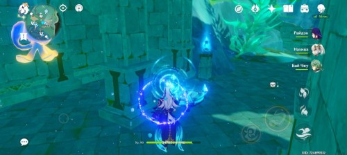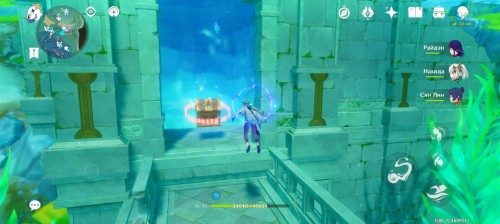 Первым делом уничтожьте сильного конька-пузырька. Он обладает защитным Электро куполом, который можно убрать с помощью элементальных реакций, и может выходить из комнаты в воду. Победив его, вы сможете сосредоточиться на загадке.