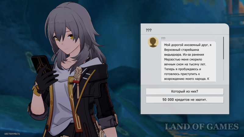 Затем нам на смартфон придет сообщение от незнакомца, который представится Верховным старейшиной видьядхард. Некто попросит 50 000 кредитов, прикрываясь рассказом о ранении и возрождении своего народа. После беседы у вас есть два варианта развития событий: