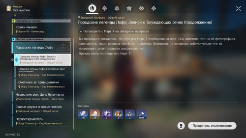 Март 7 сообщит, что с ее снимками творятся странные вещи, поэтому попросит прибыть на Звездный экспресс. Проведите расследование в Общем вагоне. Вы найдете хелиоби в фотокамере. Далее посетите различные места с фотографий и сразитесь с враждебным духом. Потом вам нужно будет решить судьбу Свечечки. Подробное прохождение квеста представлено в нашем отдельном гайде.