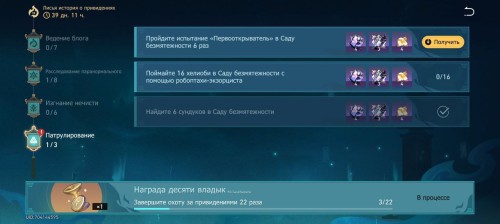 За прохождение 6 уровней вы получите дополнительные награды в меню события, в разделе «Патрулирование»: 4 путеводителя путешественника, 3 емкости очищенного эфира и 4 утраченных кристалла.