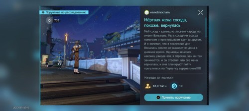 Зайдите на сайт «Страшилки Лофу». Там вы увидите следующую запись: «Мертвая жена соседа, похоже, вернулась». Кликните на нее и примите поручение.