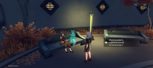 Отправляйтесь в восточную часть Переулка ауруматонов. Здесь на скамейке сидят Вэньюань и хелиоби, принявшая форму его жены Жоси. Поговорите с ними и используйте гармонический колокольчик, чтобы доказать мужчине истинную природу хелиоби.
