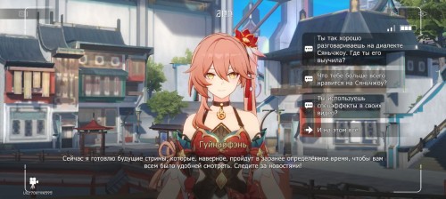 Телепортируйтесь в южную часть локации и поговорите с Гуйнайфэнь. Когда начнется съемка, выберите по очереди все вопросы для нее.