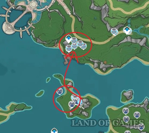 Если точнее, это небольшой маршрут от Статуи Архонтов на маленьком острове до самих руин.