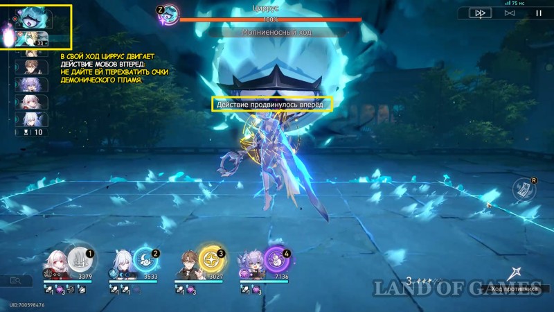 Как только запускается бой, сразу смотрите на панель ходов. Если первый удар за врагами, то они могут получить огонек, поэтому будьте готовы нажать ульту (лучше бафферов, танков или щитовиков). И помните — абилка техники тоже считается нажатием сверхспособности, а значит ее тоже можно использовать для перехвата Демонического пламени.