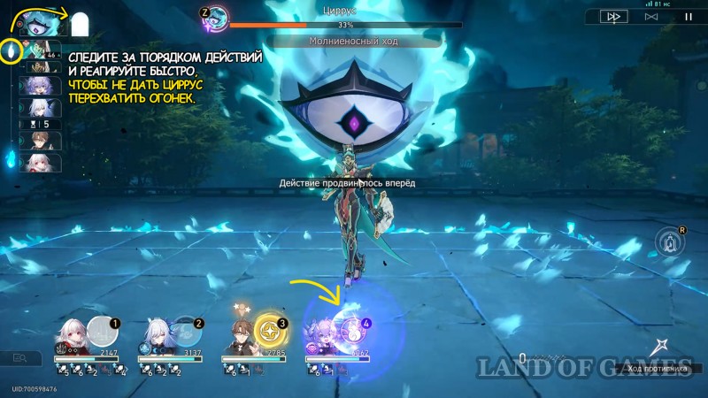 Отряд с Цзинлю в качестве основного дамагера будет самым подходящим вариантом для пробивания уязвимостей большинства врагов + Е-шка и контратака Клары, дополнительно пробивающие щиты всех подручных Циррус. Единственное, о чем стоит упомянуть: когда Цзинлю получает 2 стака для дополнительного хода, она также передвигает Демоническое пламя на 1 ход вверх. Следите, чтобы это не обернулось против вас.