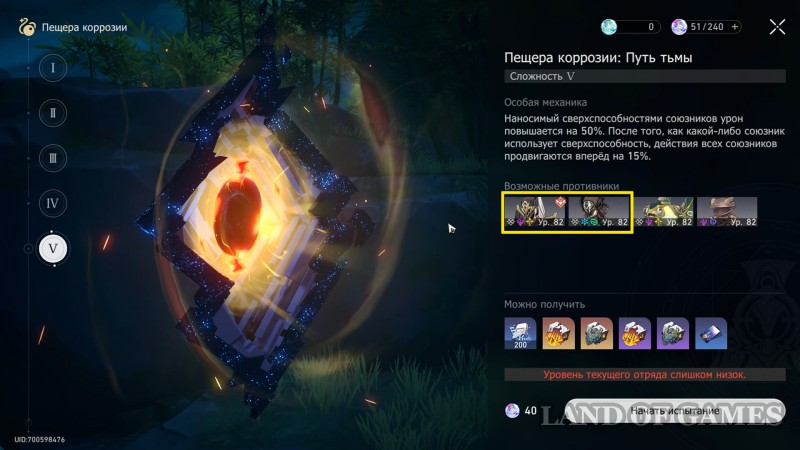 Дебафф реверберации — оглушение, которое умеют накладывать Призрачные стражницы и Спектральные посланницы-ауруматоны. А чтобы сделать его сильным, придется принять на себя дополнительные атаки от любого юнита во вражеском отряде. Эти два вида мобов являются регулярными противниками данжа с реликвиями «Путь тьмы», но на них также можно наткнуться к северо-западу от этой пещеры коррозии. Выберите уровень сложности и не забудьте перед боем использовать расходник (Инвентарь -> Расходные предметы).