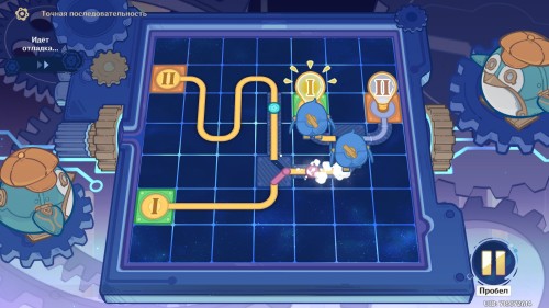 На третьем этапе будут два источника сигнала и две конечные точки. Они отличаются друг от друга разными цветами и цифрами, поэтому вы их не спутаете. На создание маршрутов вам выделят 15 фрагментов цепи.