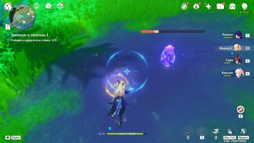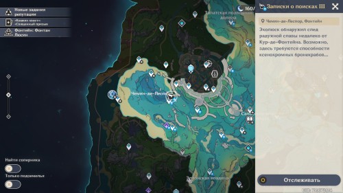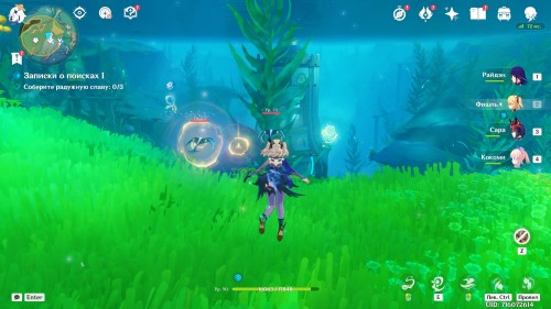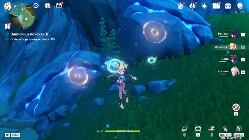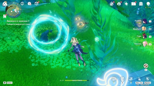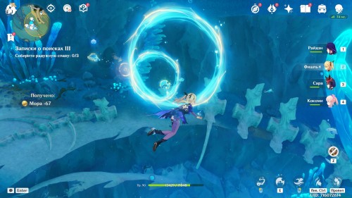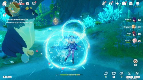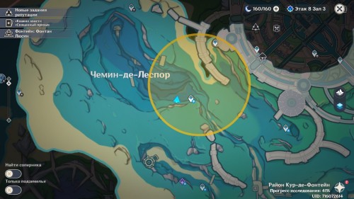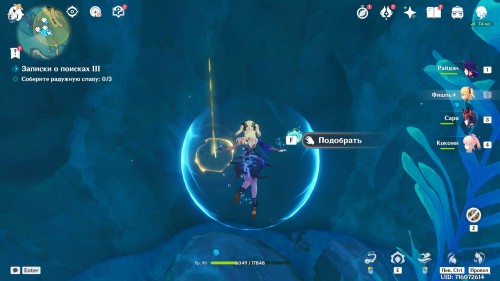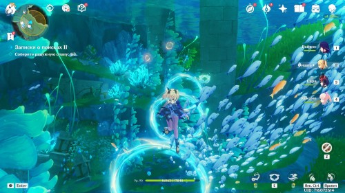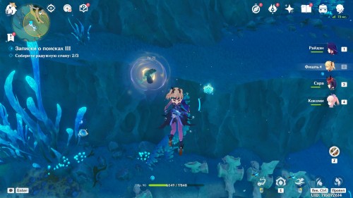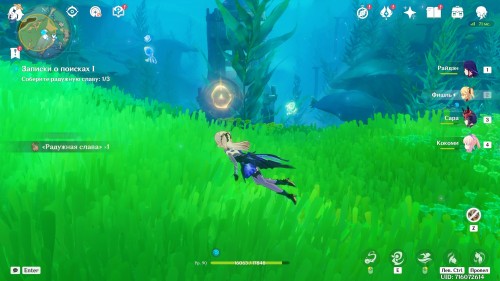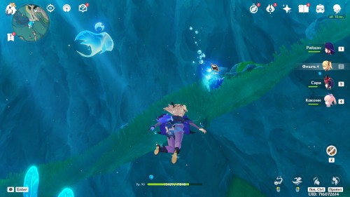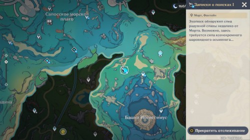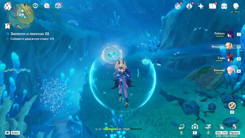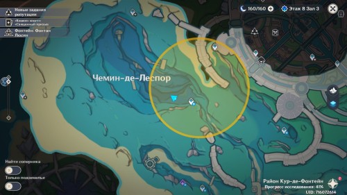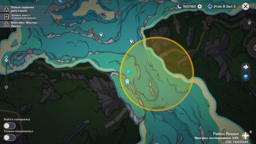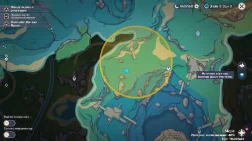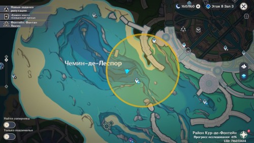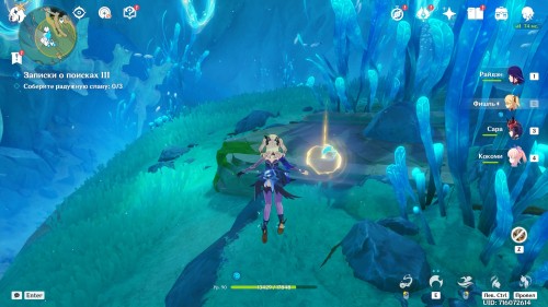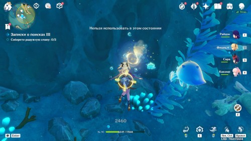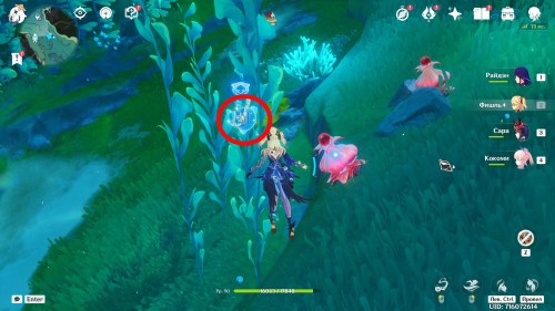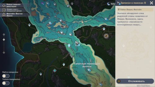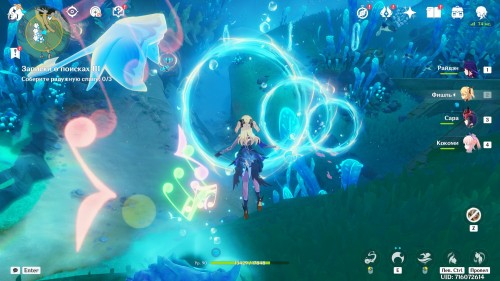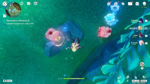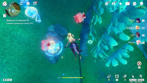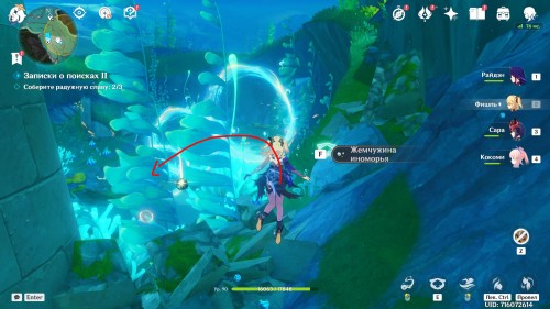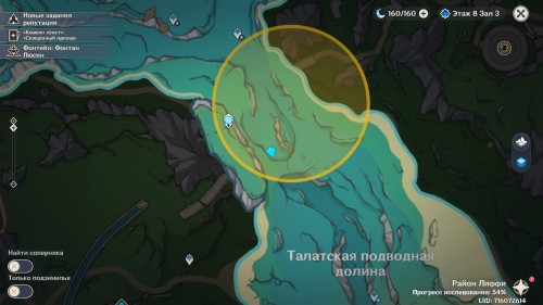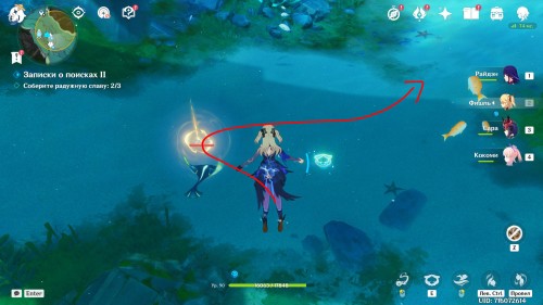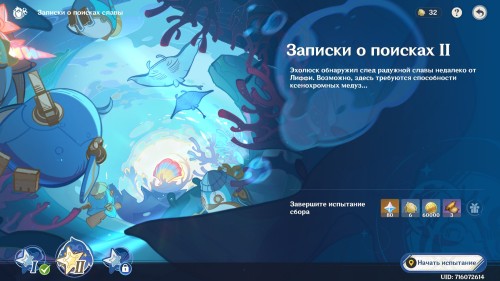 После выбора второго испытания переместитесь к статуе Гидро Архонта в северной части Талатской подводной долины, а затем нырните в воду и плывите на восток к иконке раковины. Взаимодействуйте с лежащим на дне эхолюском, чтобы он отметил местоположение радужной славы. Затем заберите силу у ксенохромной медузы, плавающей чуть западнее ракушки.